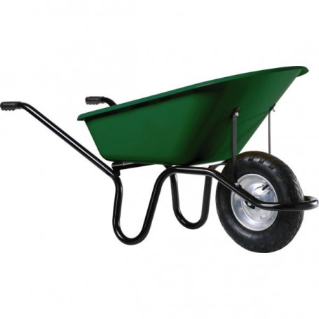 Pour les travaux du bâtiment et de la rénovation. Caisse peinte 110 l, épaisseur 1 mm, étroite (59 cm) et profonde passant par toutes les portes. Châssis en tube peint indéformable avec support caisse. Roue gonflée Ø 400 mm, jante métal flasque, roulement à billes. Charge utile : 200 kg Poids : 14,400 kg