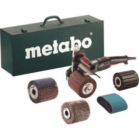 Pour le ponçage, le satinage, le brossage et le polissage miroir. Moteur Metabo Marathon, vitesse constante en charge. Blocage de la broche et écrou de serrage pour le changement d'accessoires. Protection contre la surcharge, démarrage progressif, protection anti-redémarrage. Puissance : 1700 W Diamètre de l'abrasif : Ø 100-200 mm Vitesse : 800-3000 trmn Taux de vibrations : 3,8 ms² Poids : 2,900 kg Livré en coffret avec rouleau à expansion, 3 bandes abrasives Ø 90 x 100 mm P80, 1 roue abrasive fibre Ø 105 x 100 mm P80, 1 roue abrasive à lamelles Ø 105 x 100 mm P80.