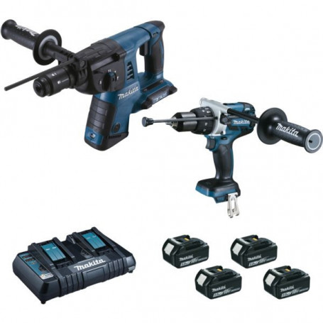 Fonctionne sur batterie 18 V. Perceuse à percussion DHP481 Vitesse : 500-2100 trmn Cadence de frappe : 8250-315000 cpsmn Poids : 2,700 kg Perforateur burineur DHR264 Puissance de frappe : 2,5 J Vitesse : 1250 trmn Cadence de frappe : 5000 cpsmn Poids : 4,700 kg Livré avec 1 coffret MAKPAC 3, 1 coffret MAKPAC 4, chargeur, 4 batteries 18 V - 5,0 Ah Li-ion et accroche ceinture.