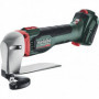 Fonctionne sur batterie 18 V. Cisaille à tôle. Épaisseur de tôle max.acier 400 Nmm² : 1,6 mm Épaisseur de tôle max.acier 600 Nmm² : 1,2 mm Épaisseur de tôle max.acier 800 Nmm² : 0,7 mm Épaisseur de tôle max.acier 250 Nmm² : 2,0 mm Vitesse : 1350-4840 trmn Vitesse de coupe :7 mmn Diamètre de passage : Ø 27 mm Rayon : 15 mm Poids : 1,900 kg Livré en coffret Metaloc sans chargeur ni batterie.